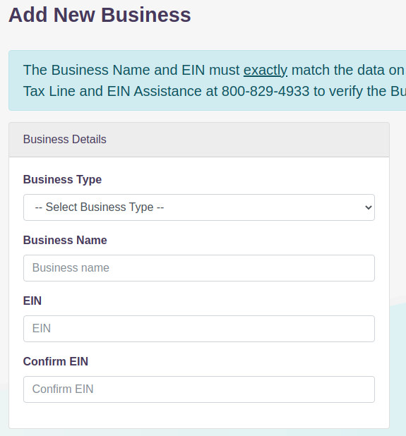 New customers can create a free account. After logging in, add your business information including the name and EIN (Federal Employer Identification Number). Click on the "Start a new 2290 return" button to begin the 2290 e-filing process.