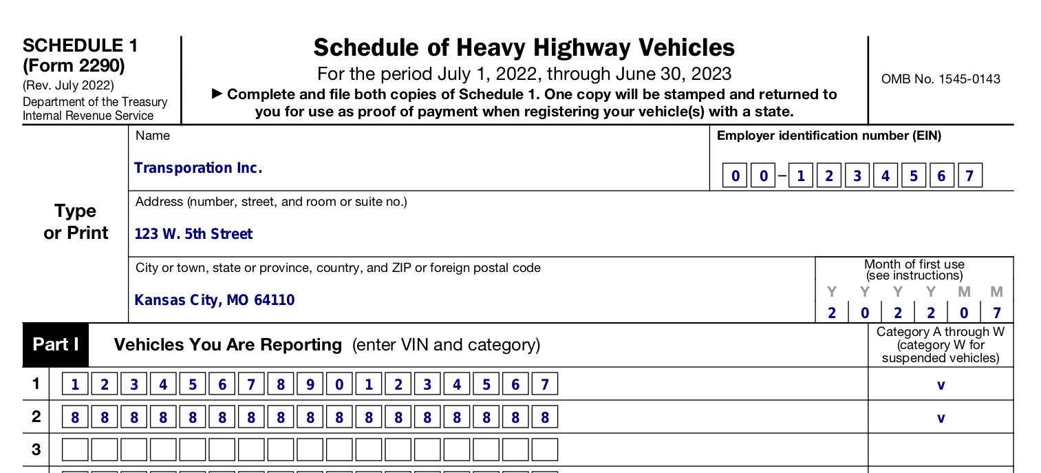 Take a look at our comprehensive IRS Form 2290 Heavy Vehicle Use Tax Guide that will help answer all your questions about the Form 2290 and Schedule 1.